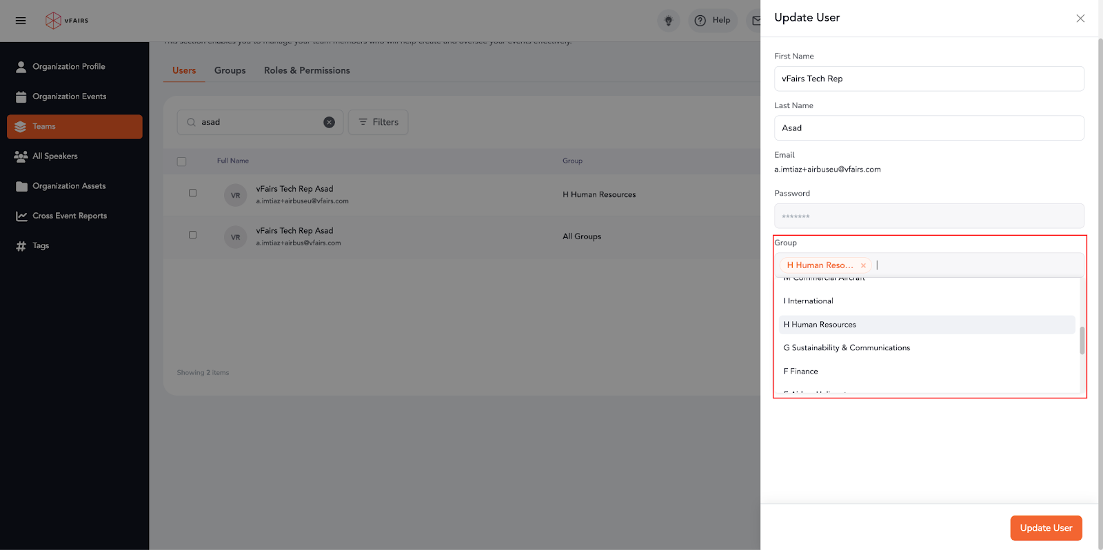 Users assigned to one event group will see cross-event analytics for only the events in that group. - Multiple Group Users: