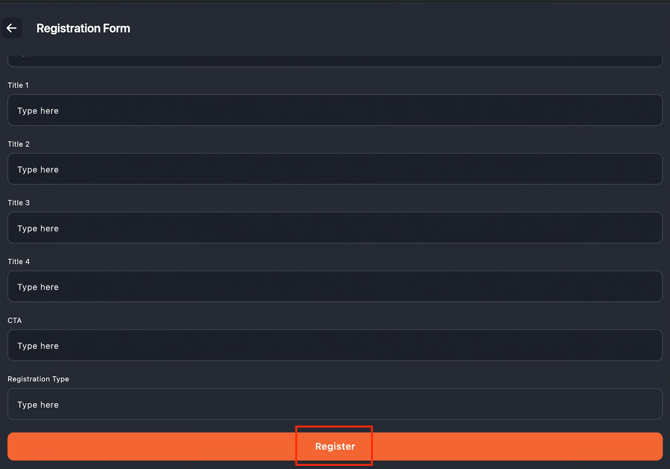 Once all fields are completed, tap the Register button to save the new attendee profile.