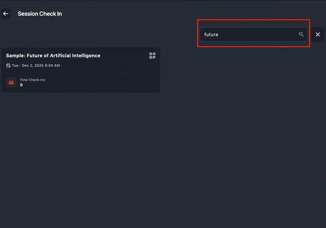Typing a keyword (e.g., “future”) will instantly filter the sessions and show only matching entries.