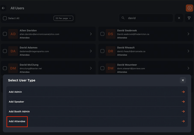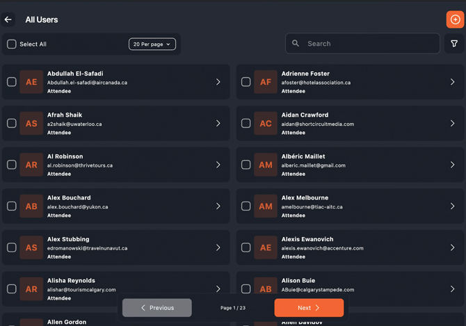 Inside Attendee Manager, you’ll see the full list of users registered for the event.