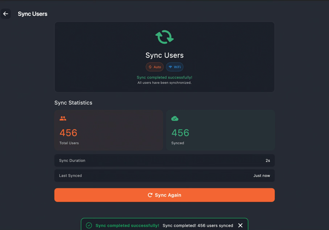 Tap Sync Again if new registrations or edits have been added since your last sync.