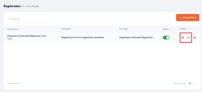 - Manage Existing Forms: Click the Gear icon to edit form fields or the Pen icon to change form settings (such as status).