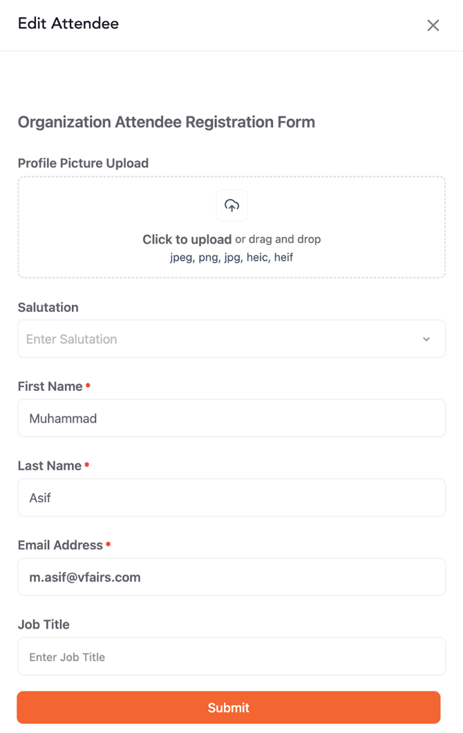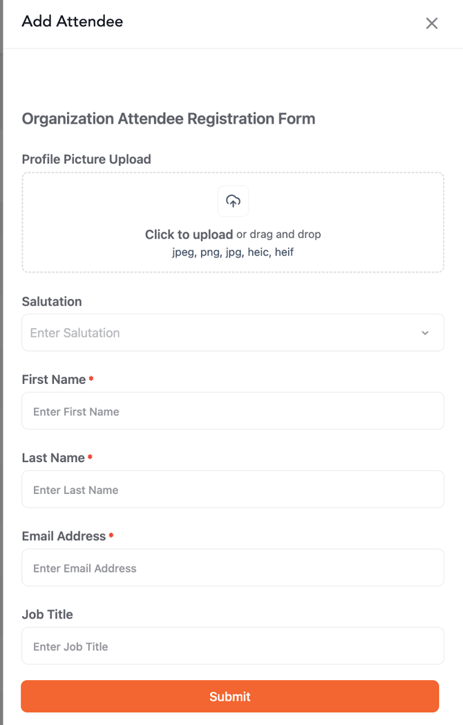 - Single Entry: Click the Add Attendee button at the top right and manually fill in their details.