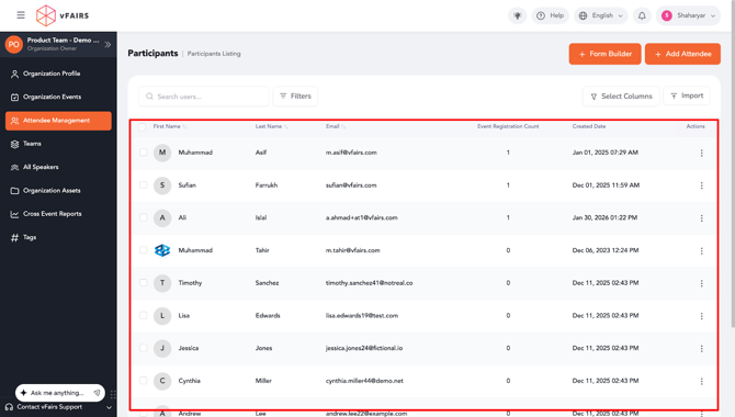 This feature is designed for Organization Owners and Admins who need a "high-level" view of their audience. Use this to find specific attendees, track their activity across multiple events, or perform bulk updates without the manual labor of searching through separate event dashboards.