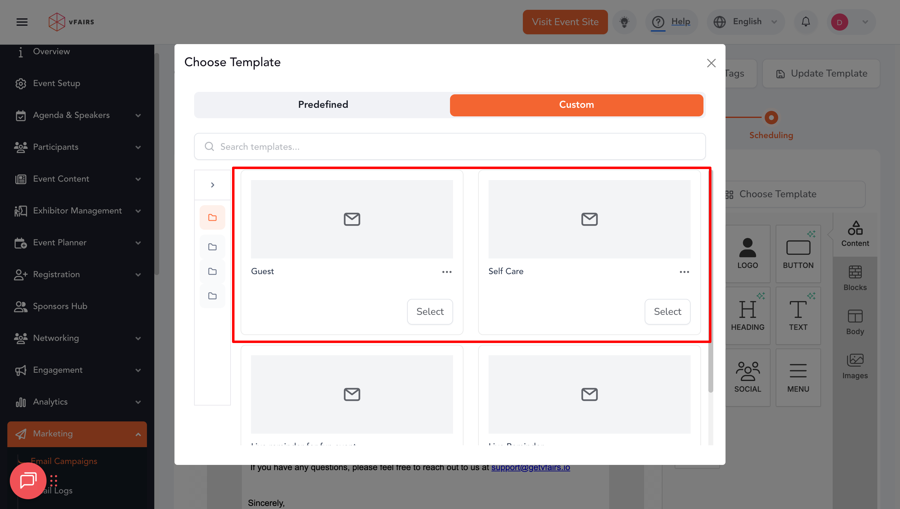 Cloning ensures your event-level email campaign templates are preserved, saving time and ensuring design consistency across events.