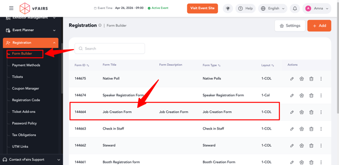 - A new form of type “Job Creation Form” will be automatically added in the Form Builder.