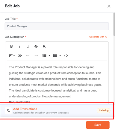 Organizers can now customize job posting fields using a Dynamic Job Creation Form. This allows you to tailor job listings based on your event requirements and collect relevant information. While exhibitors will be able to post single job or managing a list of vacancies, this article will guide you through posting, editing, translations and organizing job listings effectively.