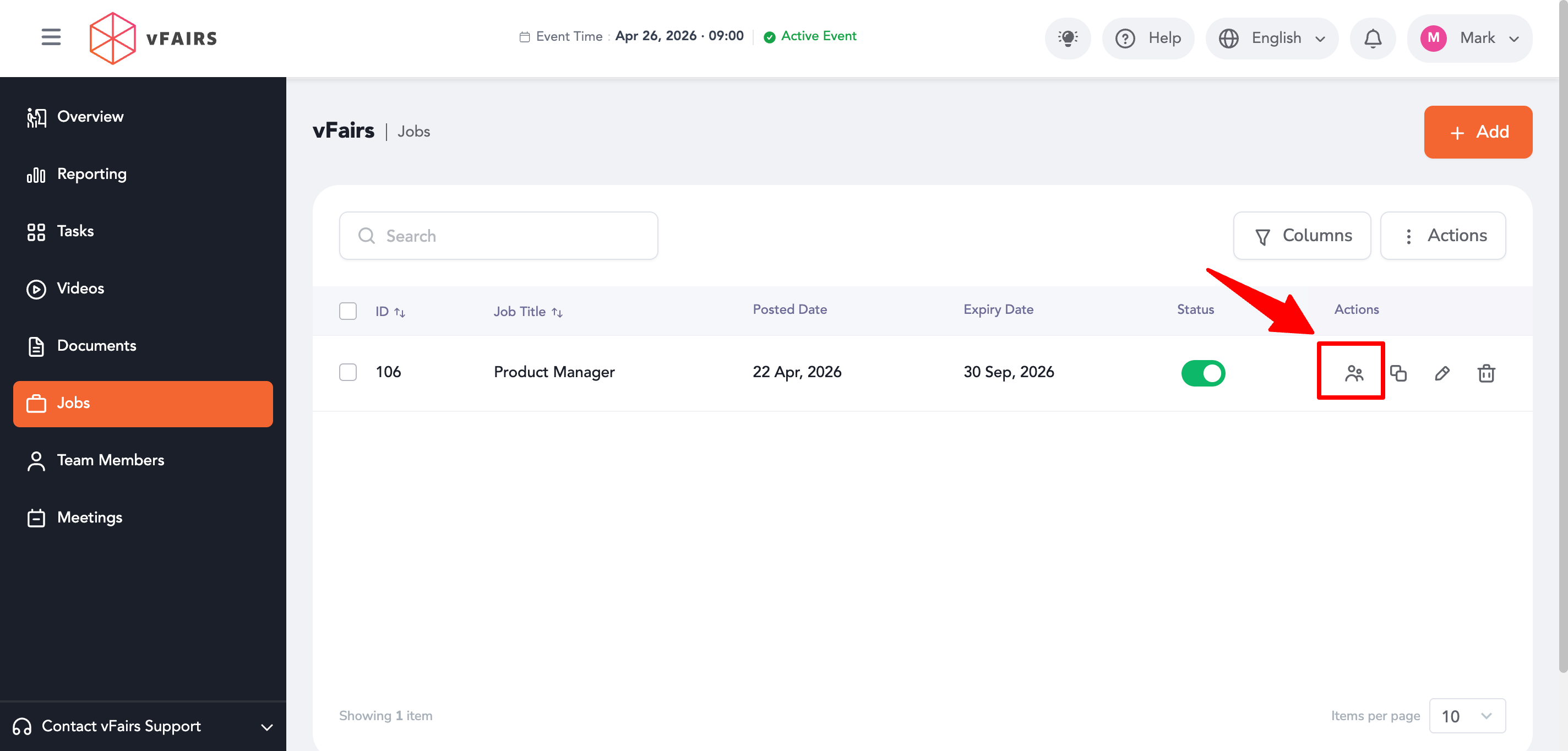 This will take you to the Jobs Dashboard where all job listings for your booth are displayed.