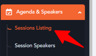 - Click on Sessions Listing to view all the sessions available.