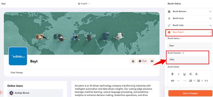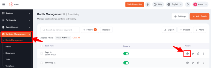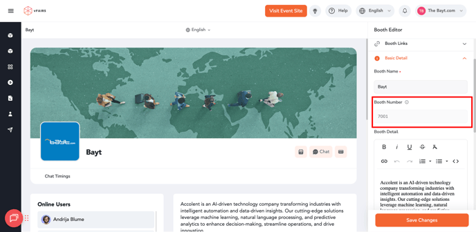 The assigned booth number will automatically appear on the event’s web front, ensuring attendees can easily identify and locate each booth.