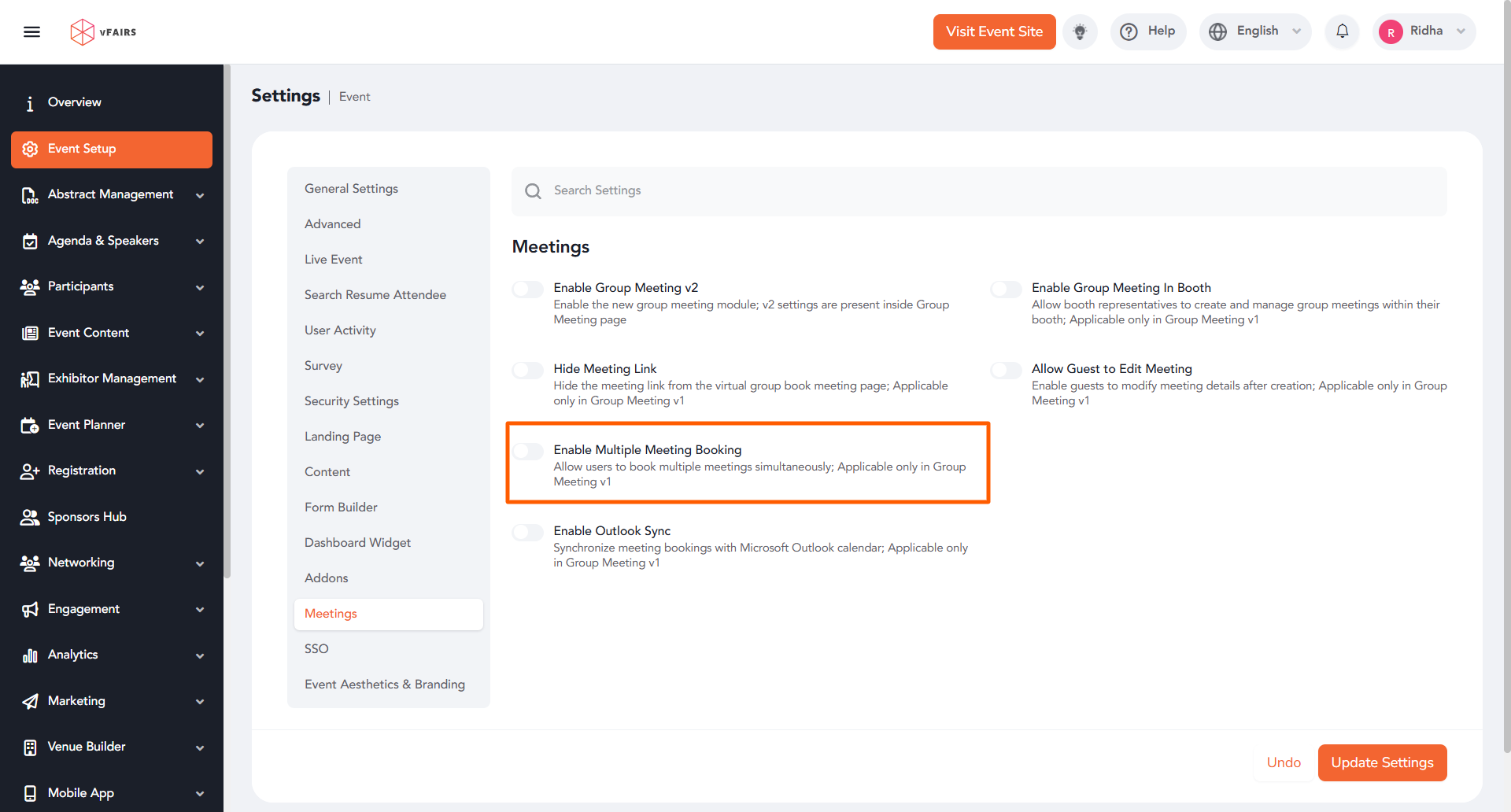 By enabling Multiple Meeting Booking in the event settings, users can schedule group meetings even on time slots that have already been booked, allowing more flexibility in meeting arrangements.