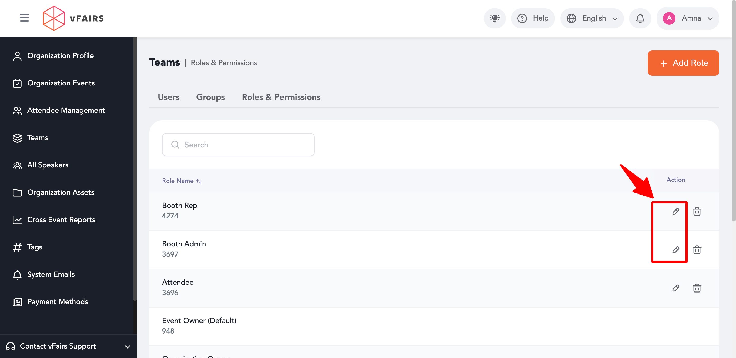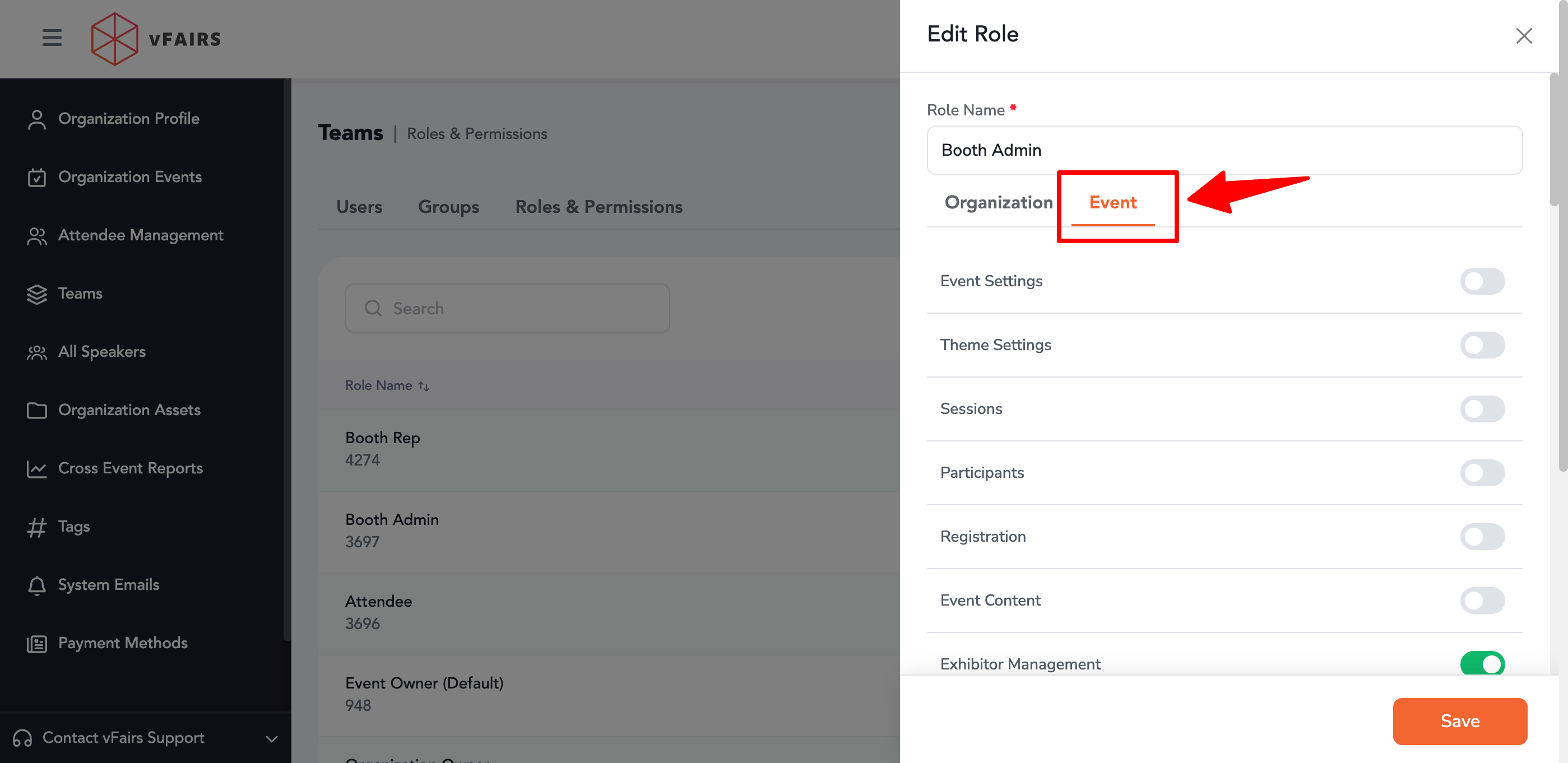 - Choose the role you want to configure (e.g., Booth Admin or Booth Rep).