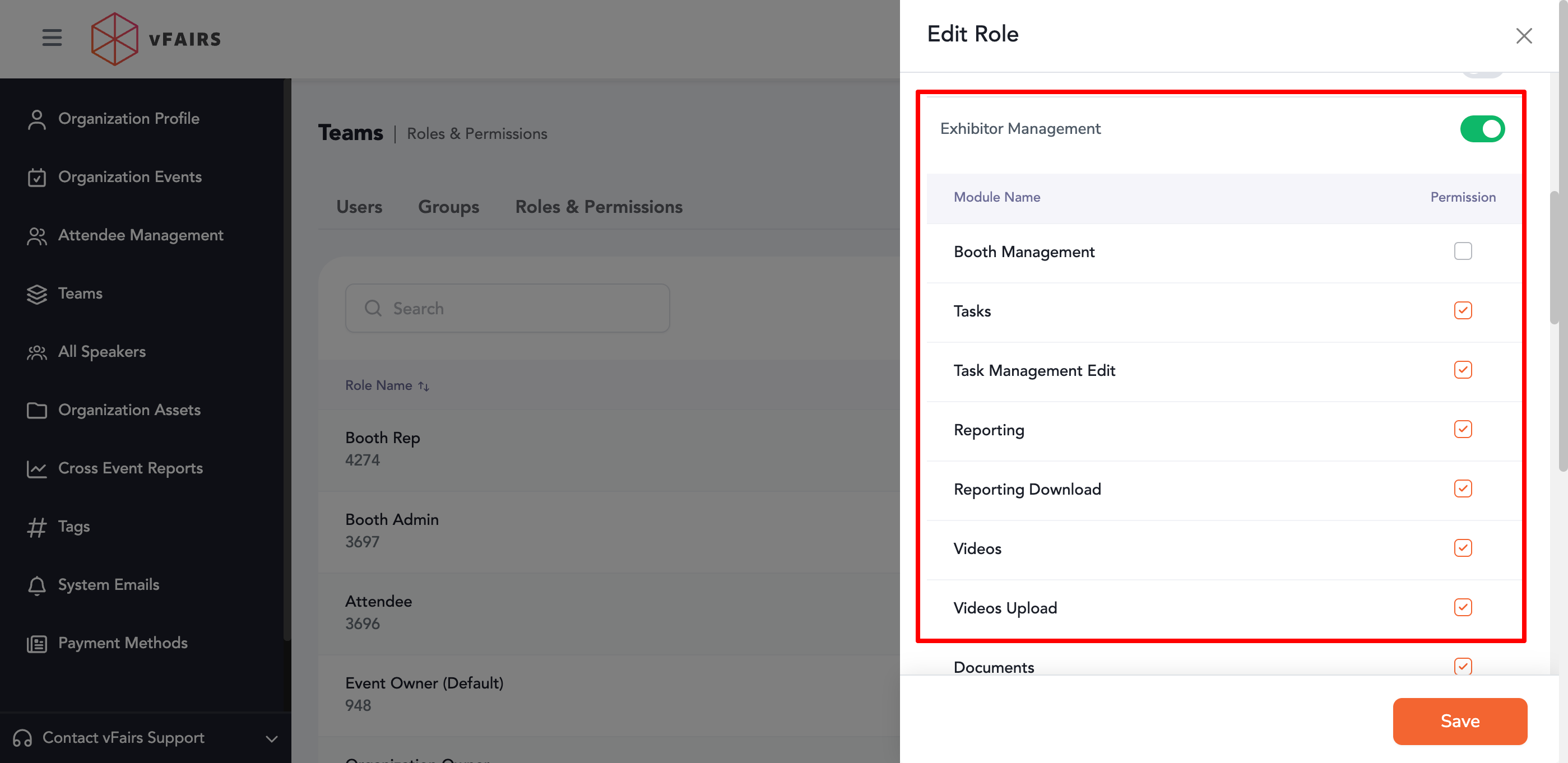 - Changes apply across the Exhibitor Portal for users assigned to that role.