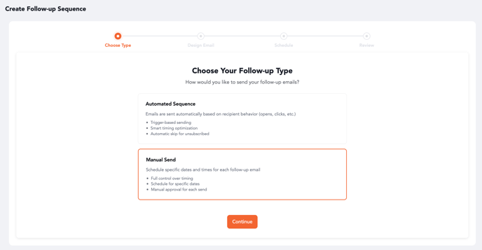 On the Choose Type screen, select Manual Send → click Continue.