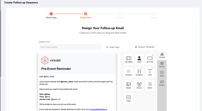 Use the drag-and-drop email builder to design your follow-up.