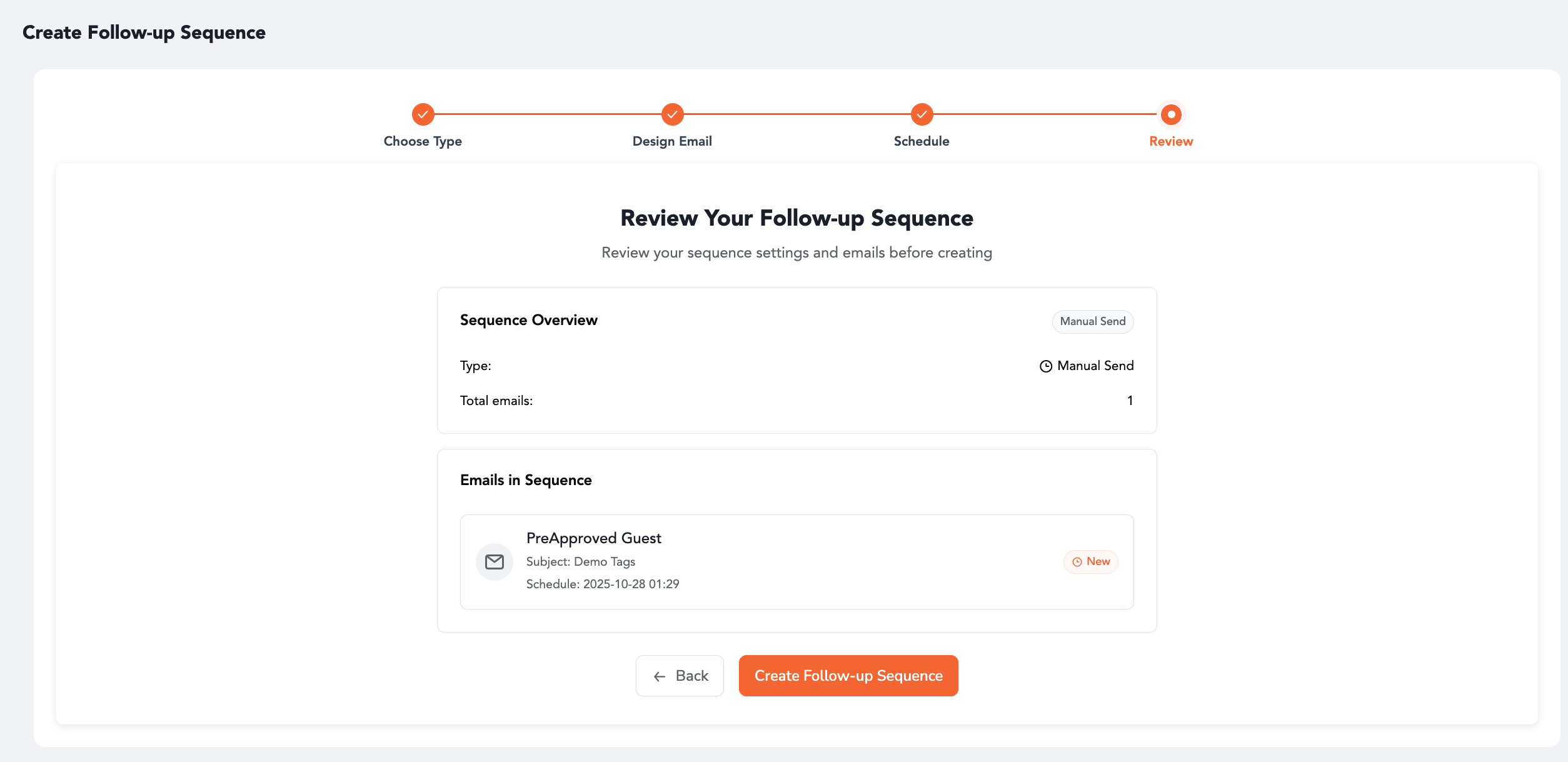 Using follow-up sequences helps automate attendee engagement and simplify manual scheduling giving organizers more control over campaign timing, delivery, and audience behavior tracking. Whether you choose automated or manual follow-ups, all activity remains seamlessly organized under your main campaign, ensuring a unified and efficient communication workflow.