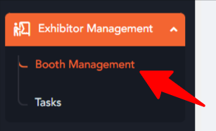 Once logged in the backend, navigate to the Exhibitor Management and click Booth Management section found in the left navigation menu.