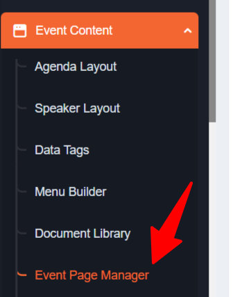 - In the Event Content section, select Event Page Manager.