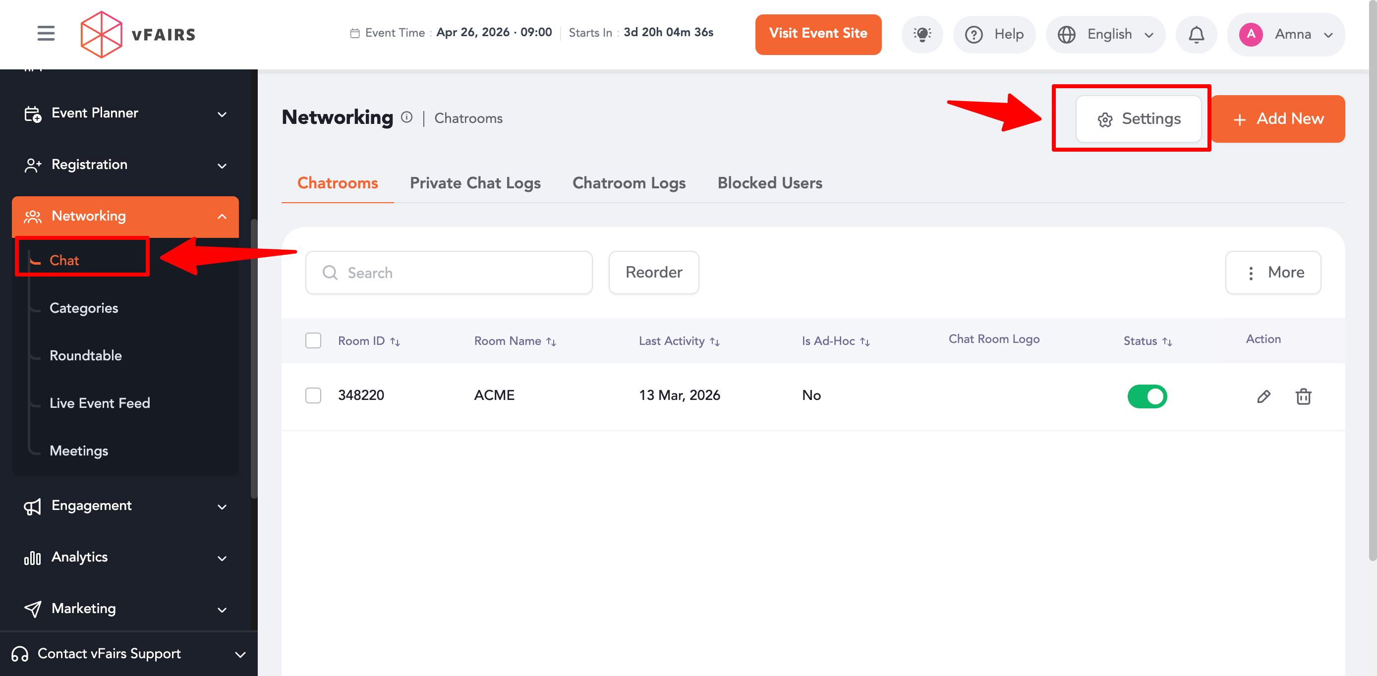 - Adjust settings such as chat duration, concurrent conversations, and attendee limits as per event requirements.