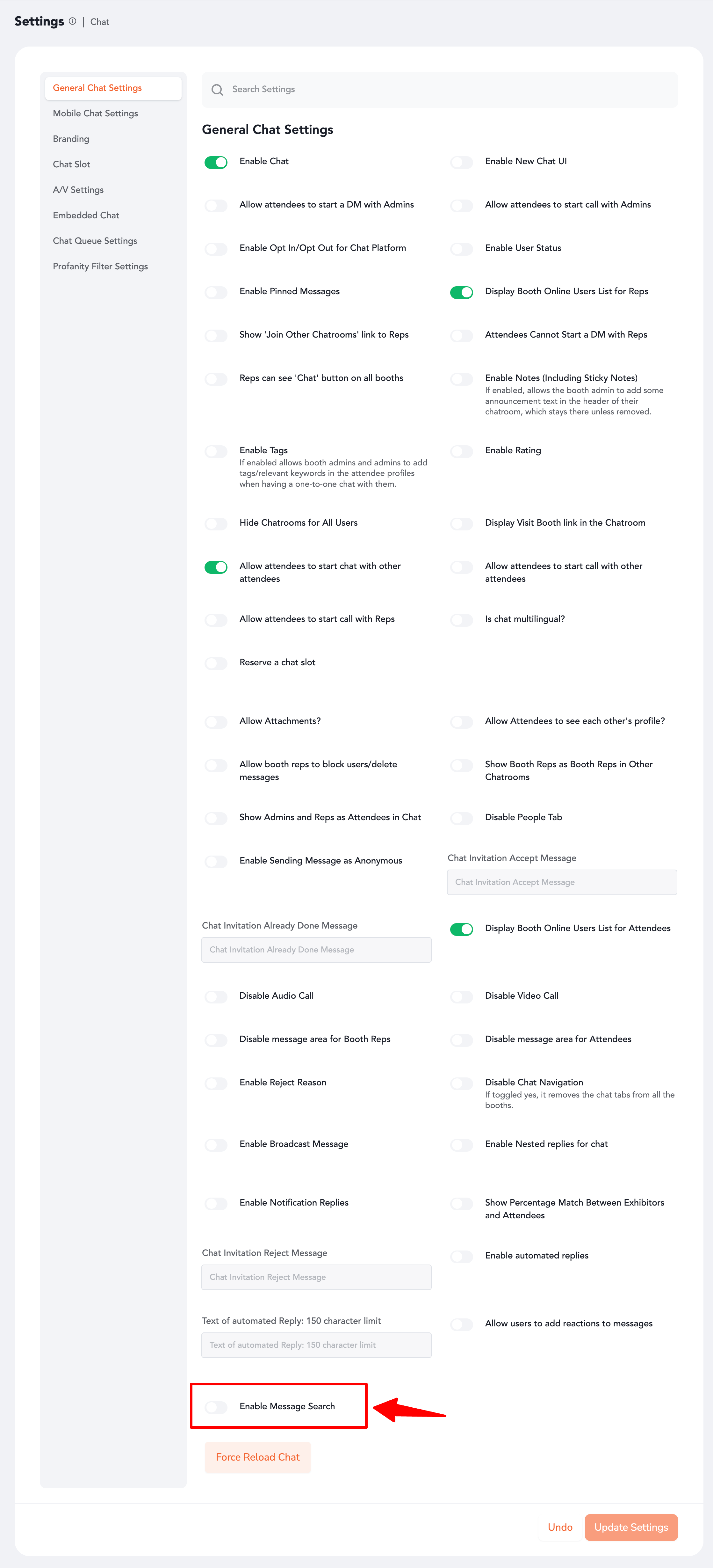 After enabling the message search option, click ‘Update Settings’ to save the updates.