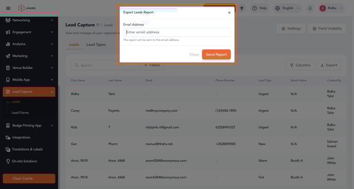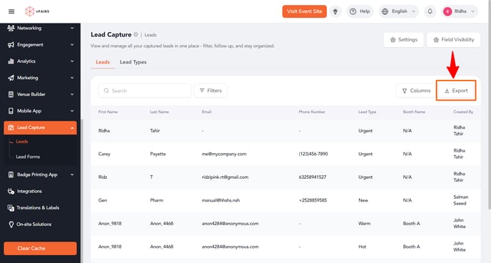 Exporting leads is a crucial step in managing event-generated contacts, allowing organizers to analyze, follow up, and integrate data into their CRM systems. Follow these steps to efficiently export your leads through the backend.