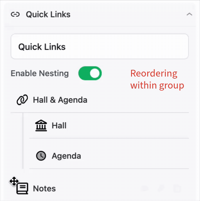 - Toggle Enable Nesting ON at the top of the Quick Links section