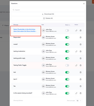 Bulk Delete: Delete all submitted questions for the session in one step.