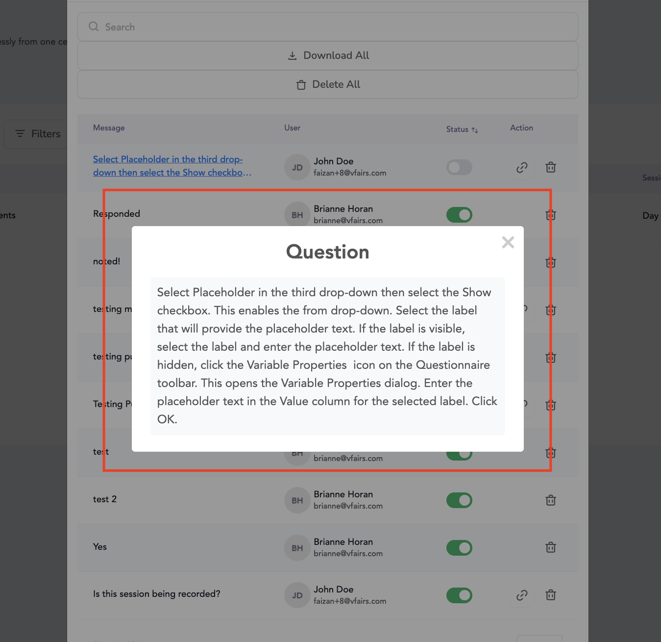 Bulk Delete: Remove all questions submitted for that session in one action.