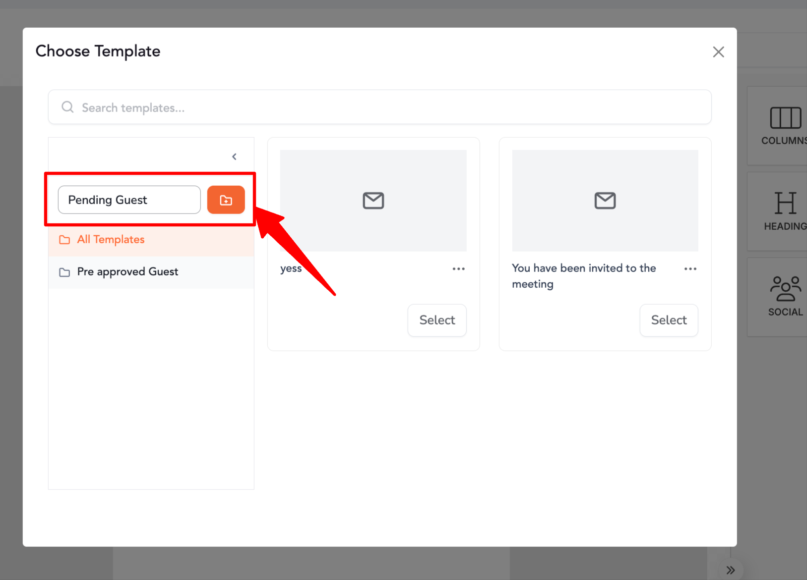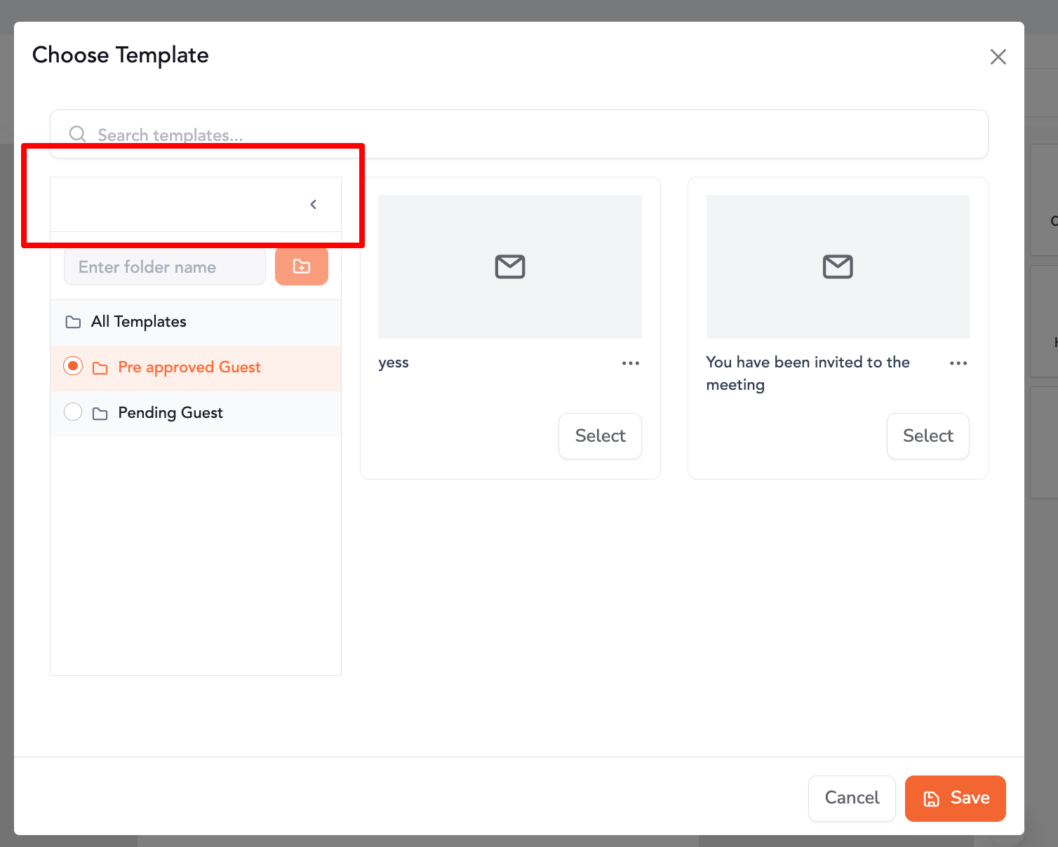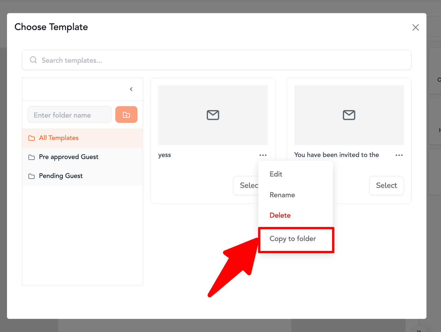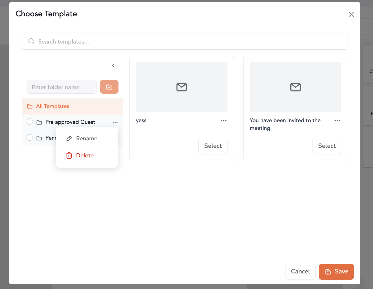 Rename Folder – Select a folder, click the rename option, and update the name. (Not allowed for “All Templates”).
