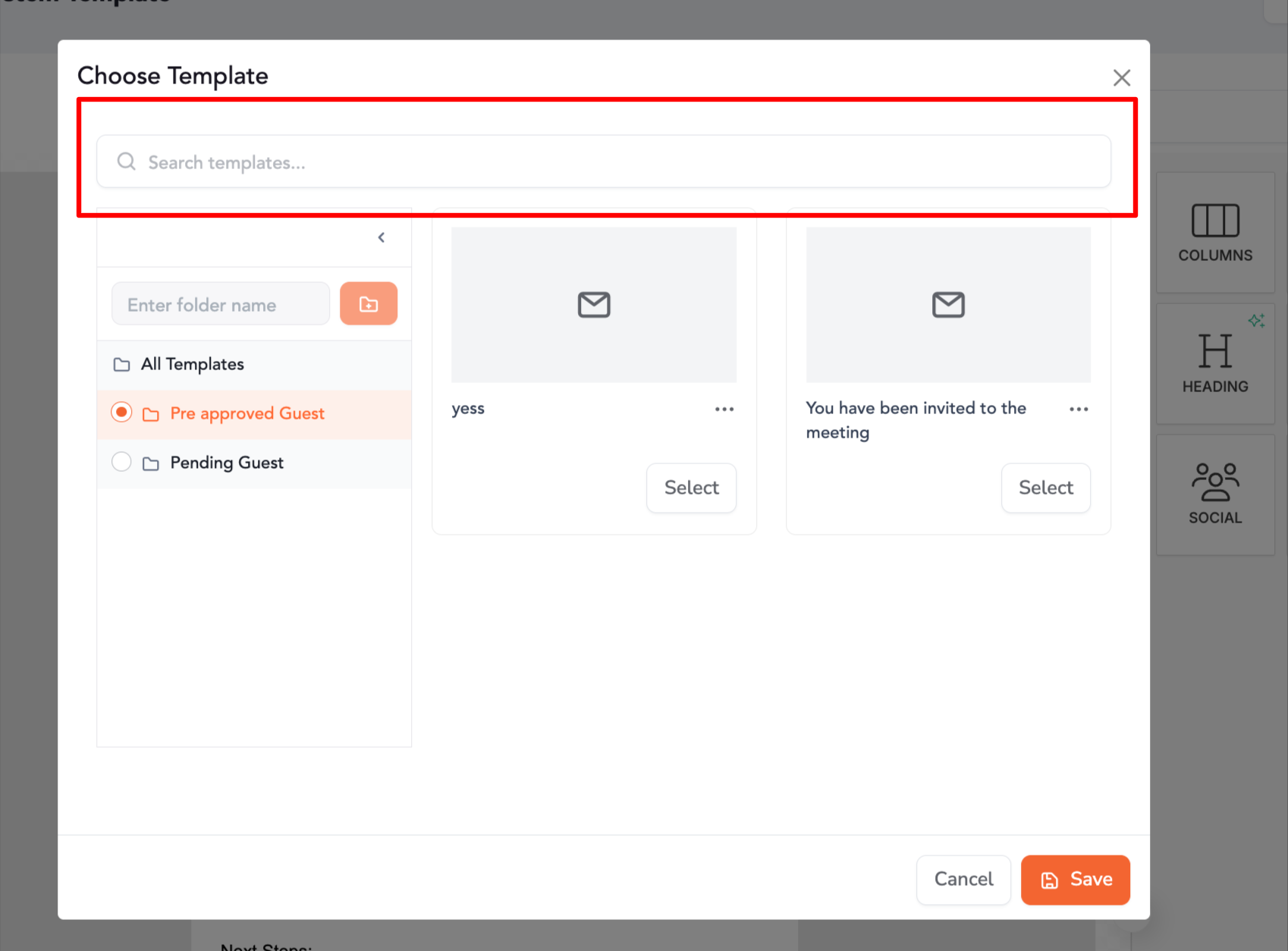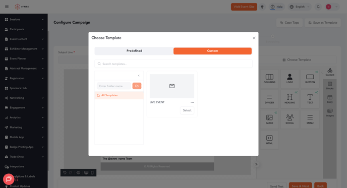 Learn how to create and manage folders in the Custom tab of the Templates modal to keep your saved templates organized.