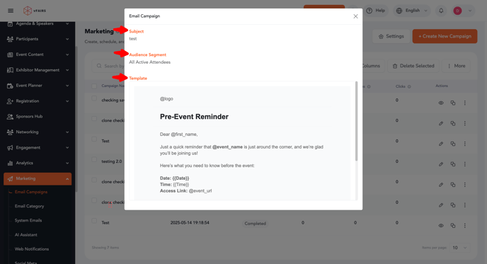 Learn how to view the subject line, email template, and selected audience segment for completed campaigns to keep a clear record of what was sent.
