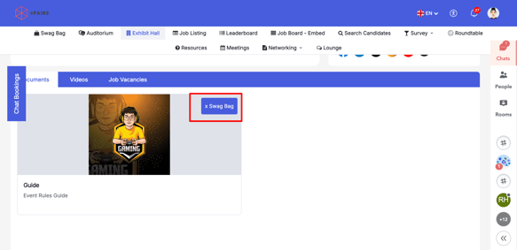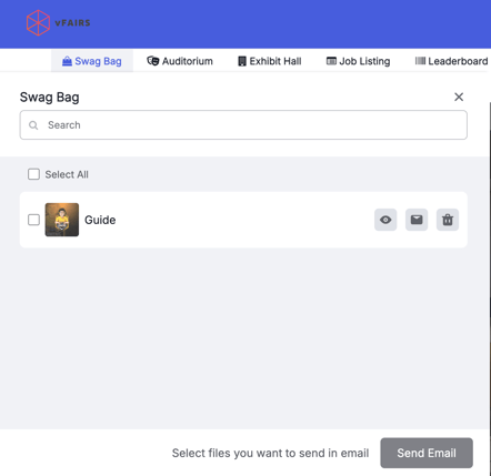 The Swag Bag feature allows organizers to provide attendees with downloadable resources and promotional materials from exhibitors during an online event. These resources can include documents, videos, and files, which users can access, download, or email to themselves for later use.