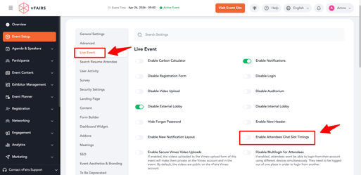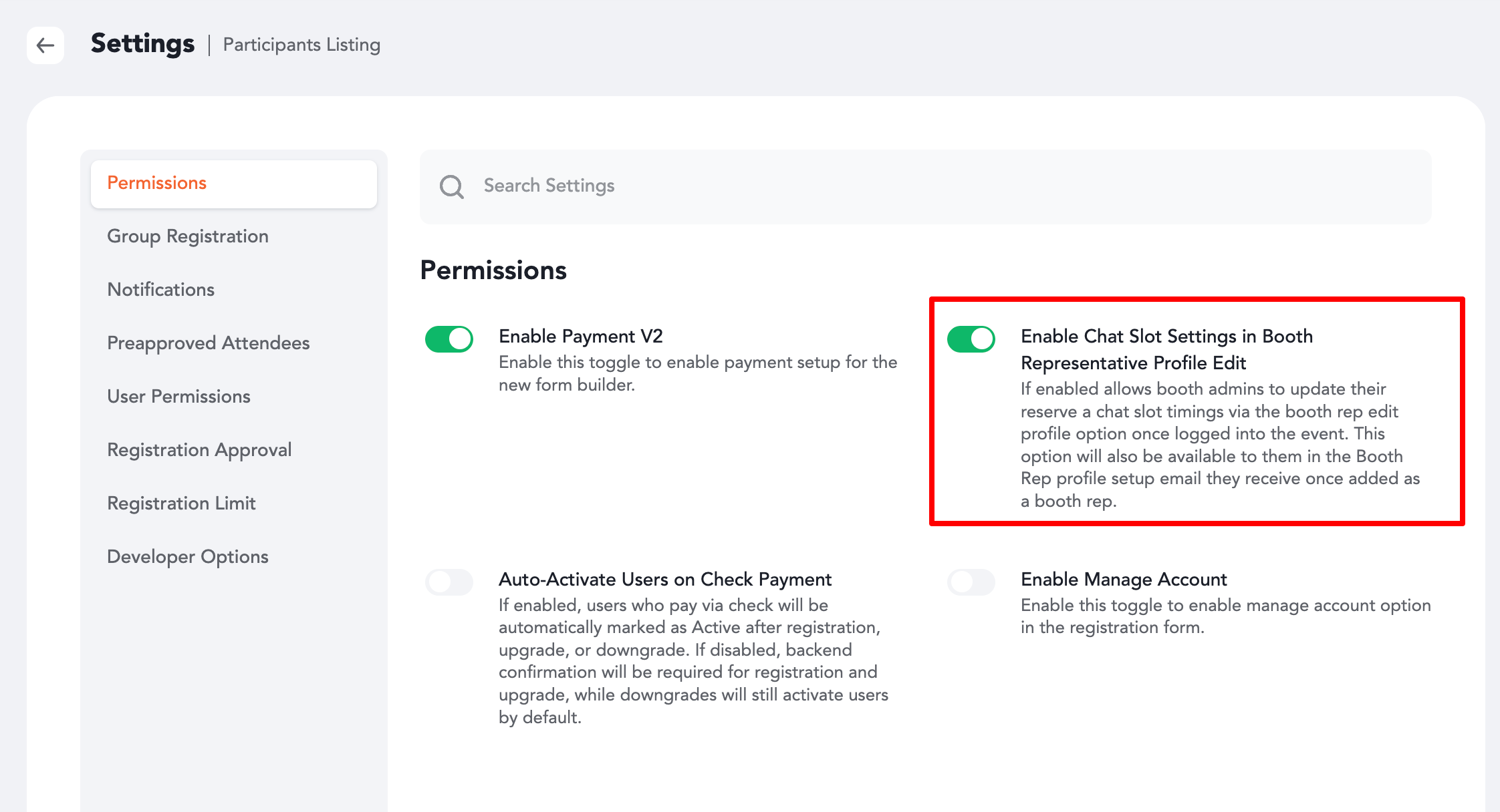 “Enable Chat Slot Settings in Booth Representative Profile Edit.”