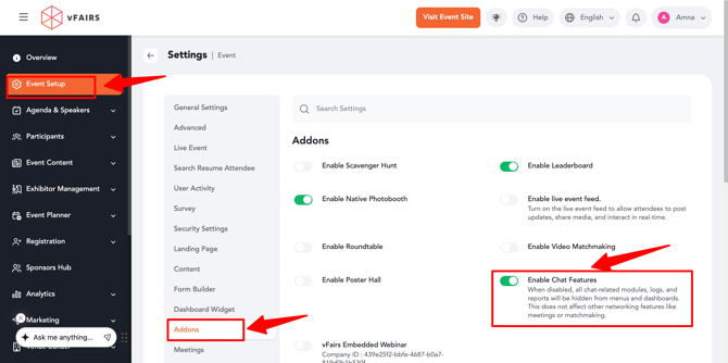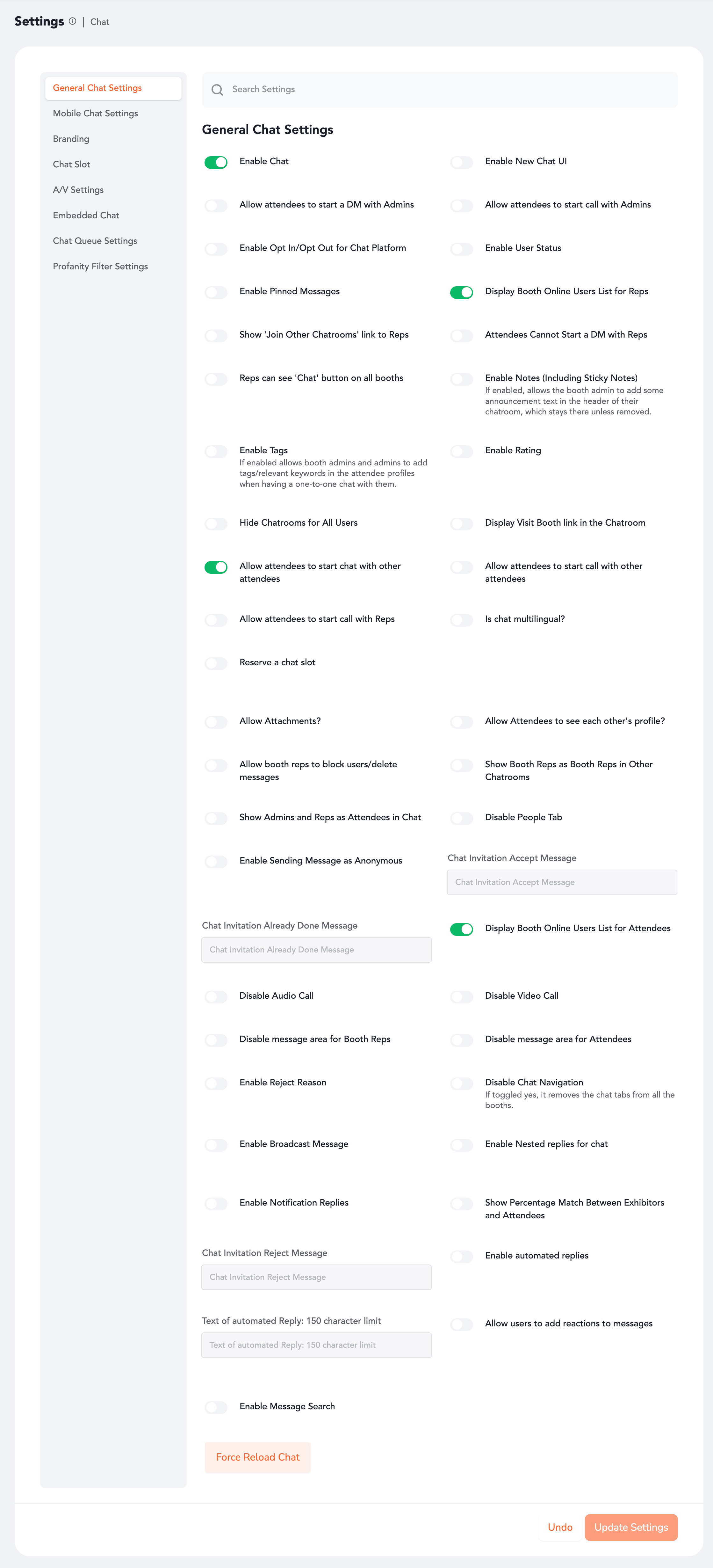 Creating an engaging and efficient chat system within vFairs is straightforward. This will walk you through the essential settings to configure chat functionality effectively, enhancing participant interaction at your virtual event.