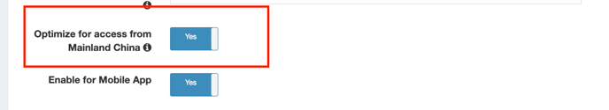 1. Navigate to the Event Setup section in the backend and enable the toggle labeled "Optimize for access from Mainland China".