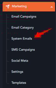 1. Navigate to the "Marketing" and then "System Emails" sub-section in the backend.