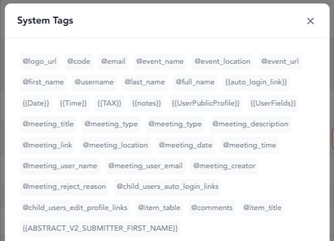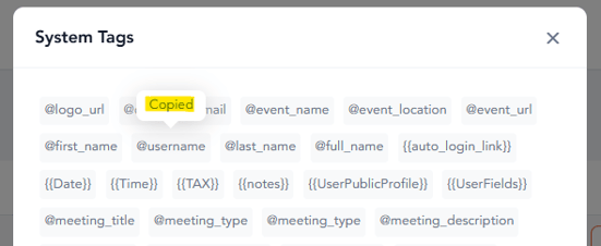 4. A "System Tags" pop up will appear with the tags that can be copied as per an email's requirement.