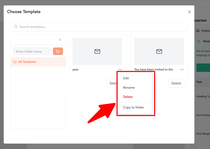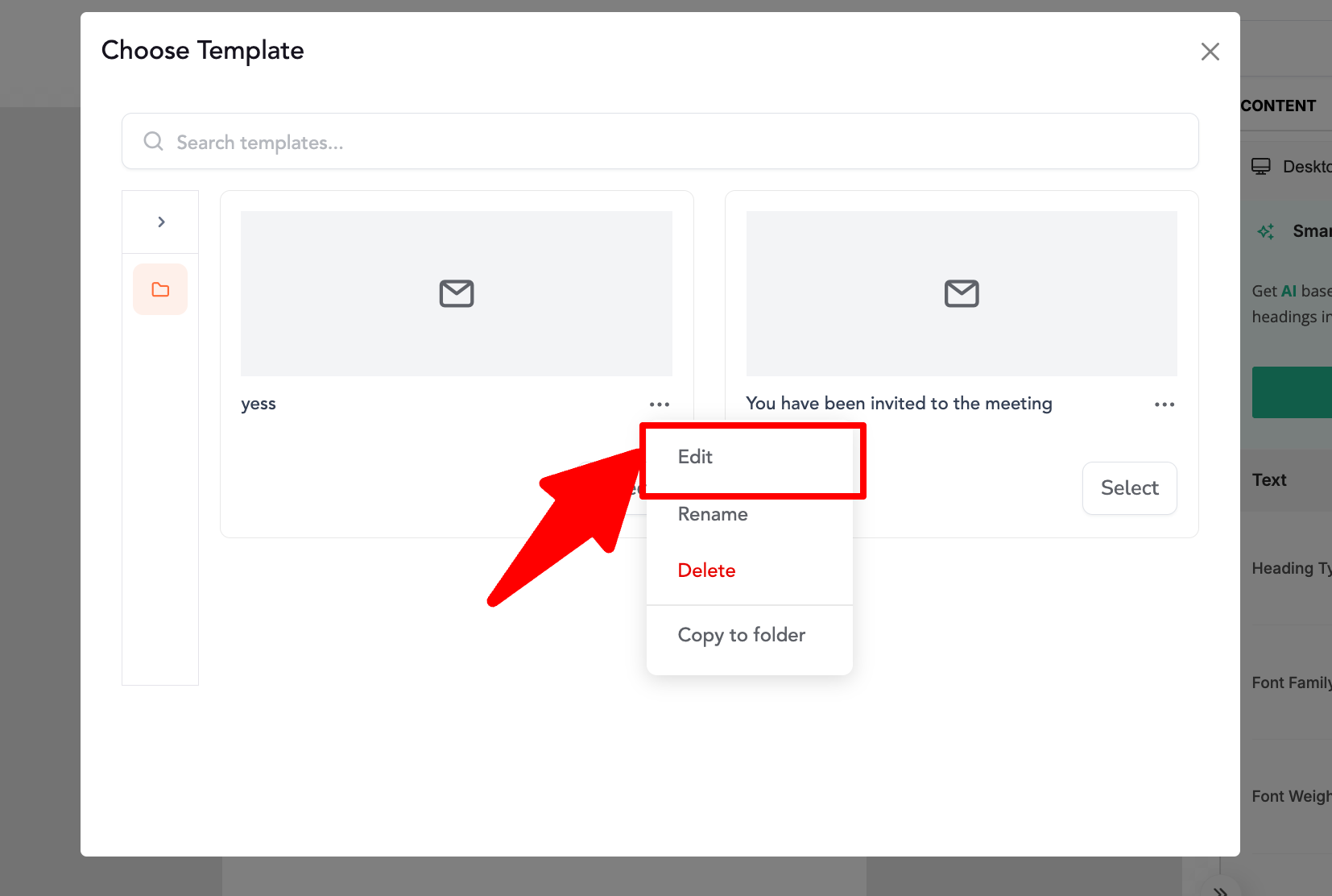 Actions: Select, or use the 3-dot menu (Edit, Rename, Duplicate, Delete, Copy to Folder).
