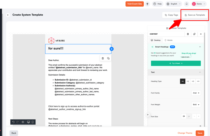 Learn how to save and manage custom templates for your System Emails using the Templates modal and Quick Save option.