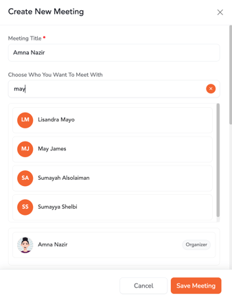 - Meetings created by logged-in user