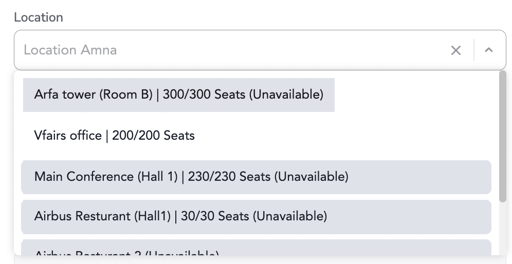 - No available locations → message displayed
