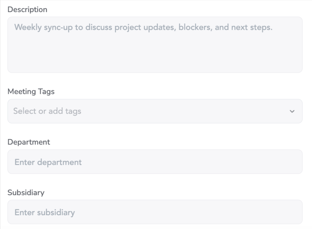 Meeting Setup Fields