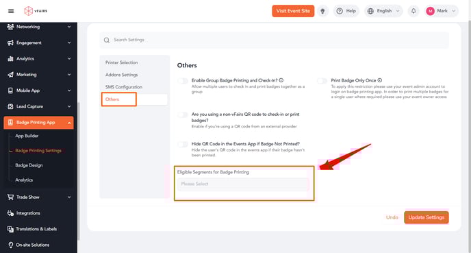 This setting allows admins to filter which segments of users are eligible for badge printing. Once applied: