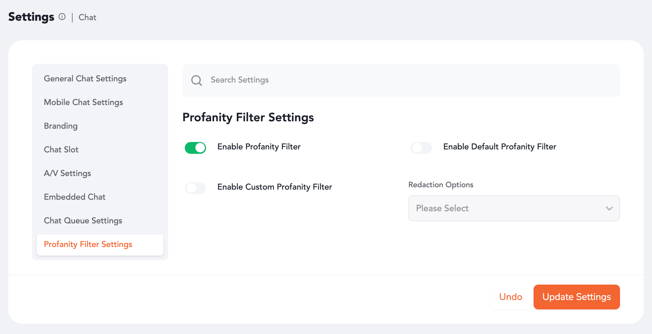 Profanity Filter Settings
