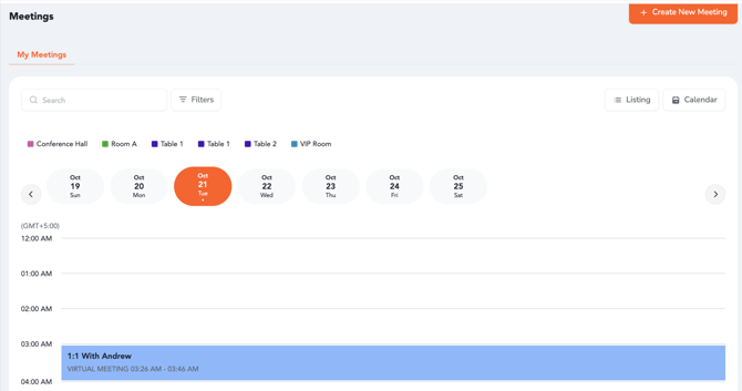 Exhibitors can see all meetings that are scheduled with them or their booth team.