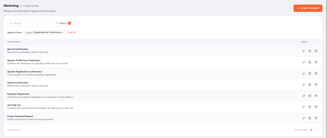 Using this updated view, organizers can instantly recognize each template’s purpose without relying on repetitive subject lines, making the System Emails dashboard clearer and more efficient to manage.