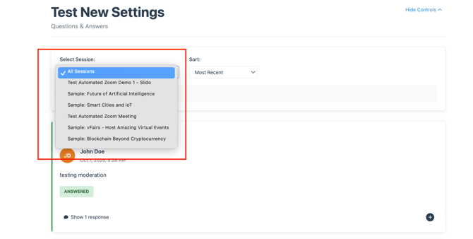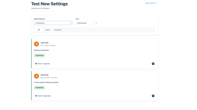 Note: The timestamps on the questions, along with the timezone label, reflect the event’s default timezone setting.