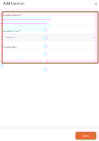Once all the required fields are completed, look for the Save button at the bottom right of the drawer. Click Save, and your new location will be created and added to the list of session locations.