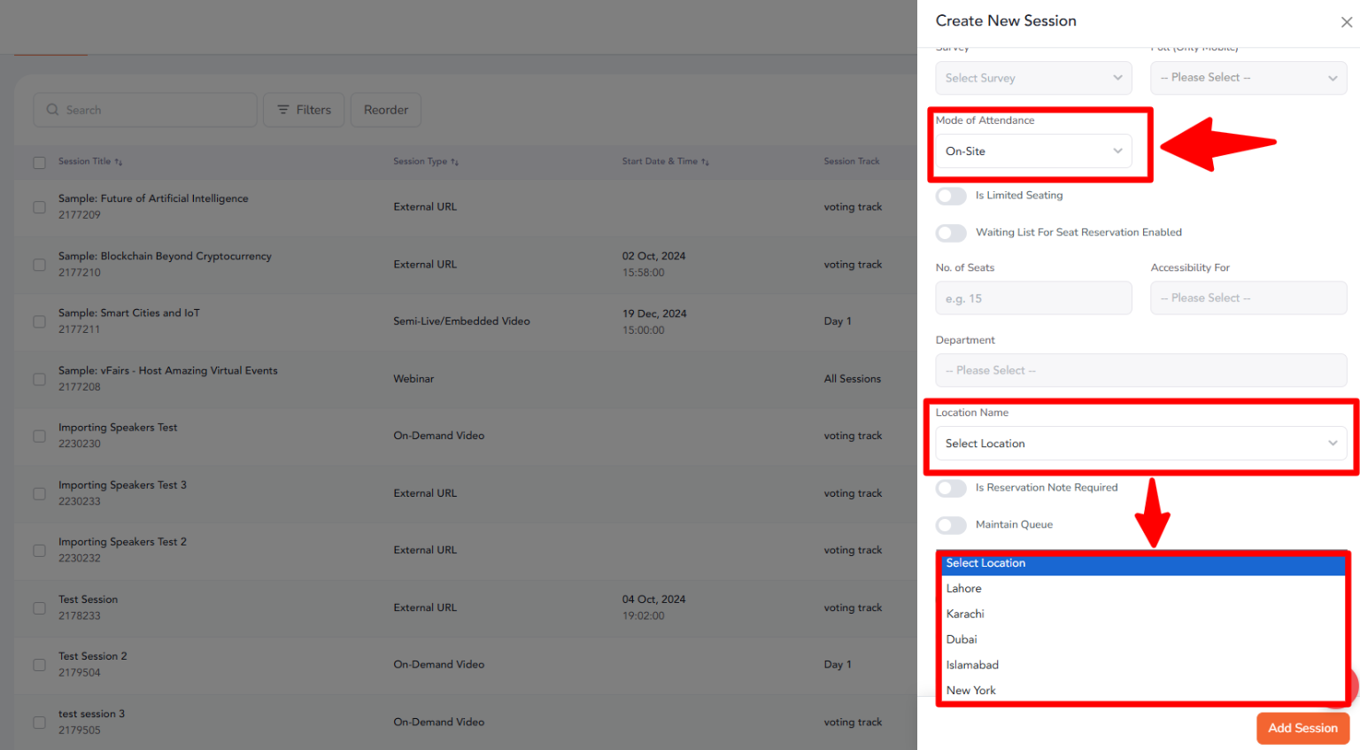 Adding a location to a session is a quick and straightforward process that enhances event organization and attendee experience. By following the simple steps above, you can ensure that each session is properly linked to a location, whether physical or virtual.