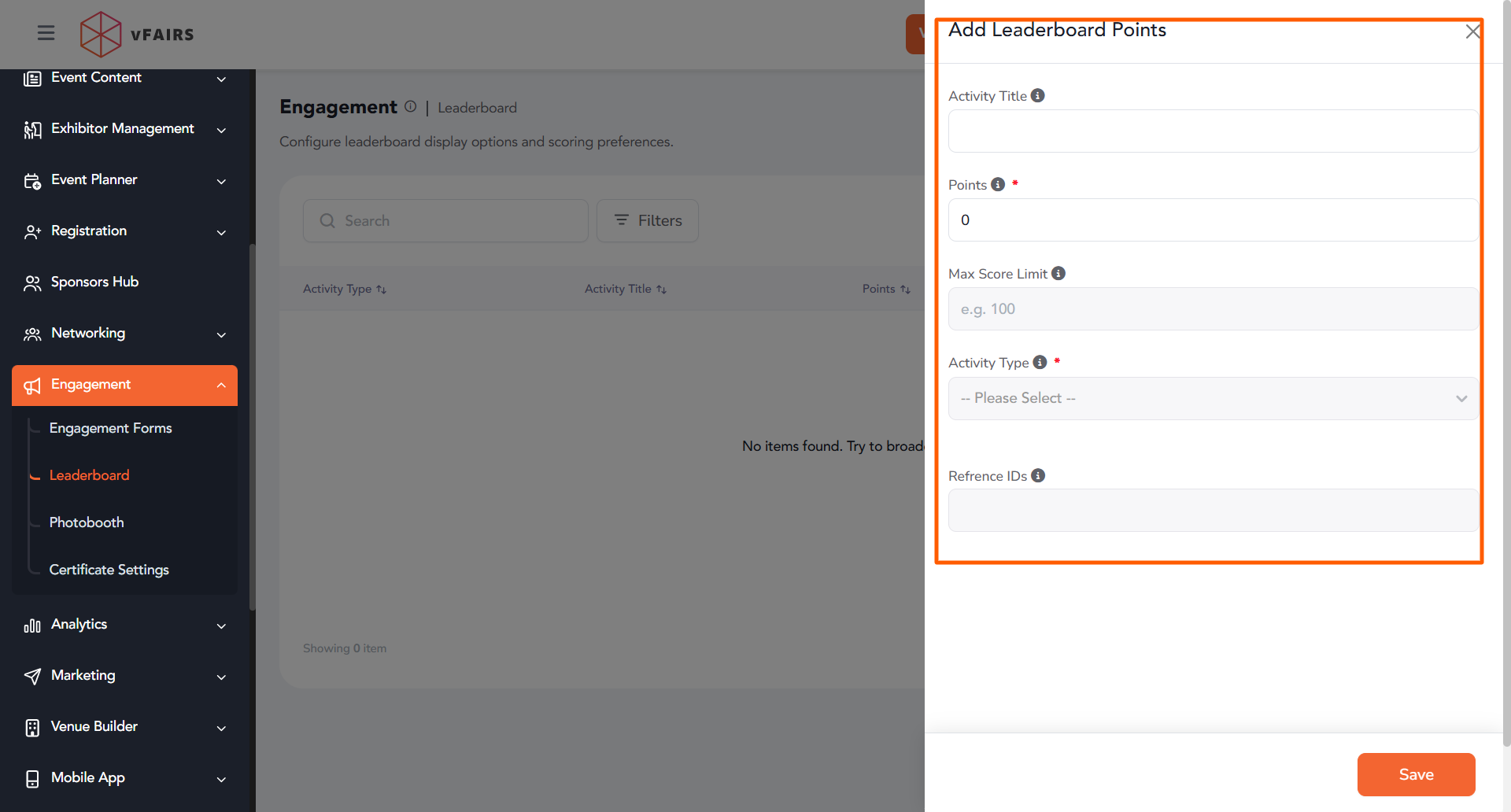 Once you've entered the desired points, click the Save button to confirm the changes. The new points will be added to the leaderboard, and participants who meet the corresponding criteria will earn those points automatically.